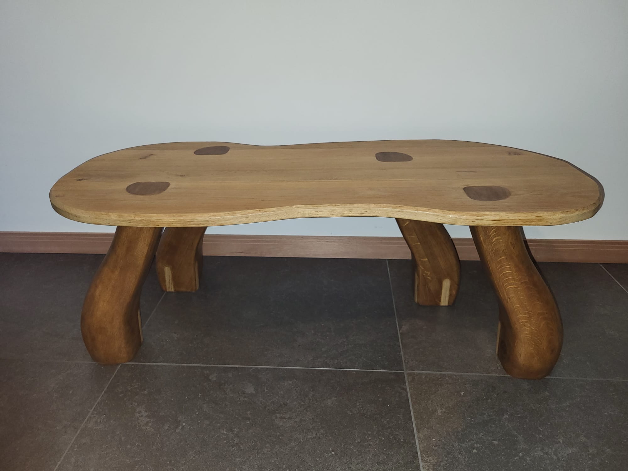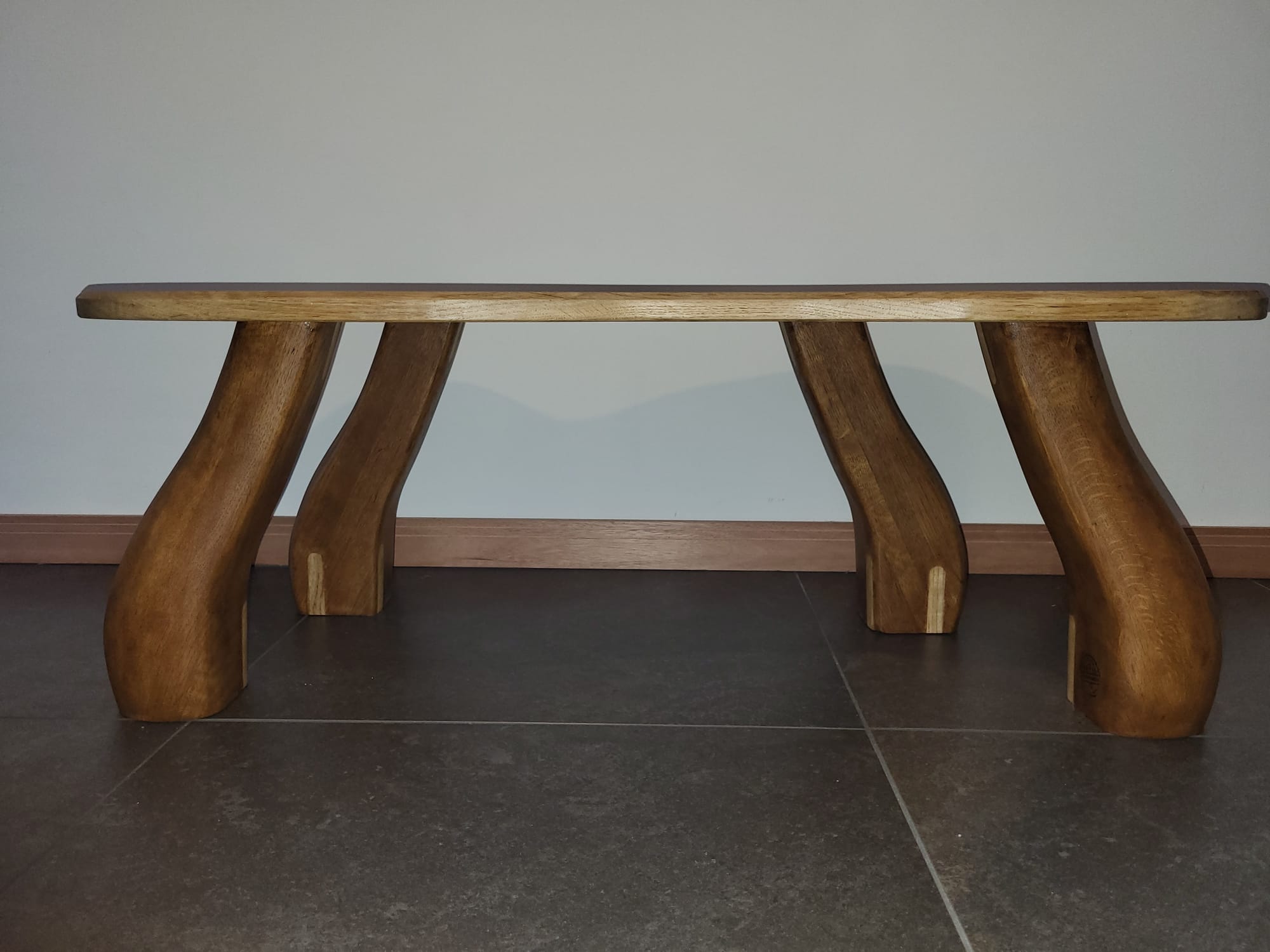 - Ambachtelijke tafel met poten die het blad doorbreken