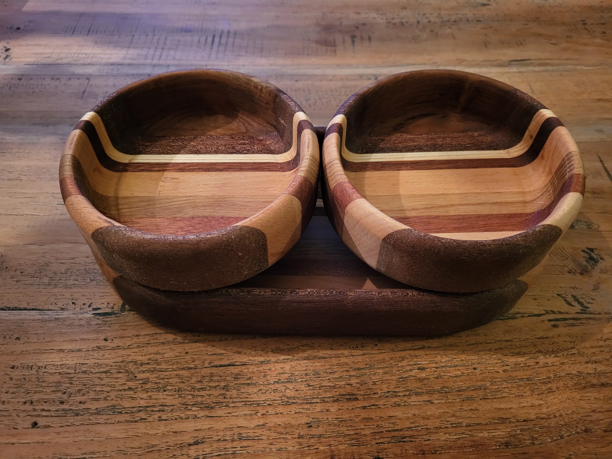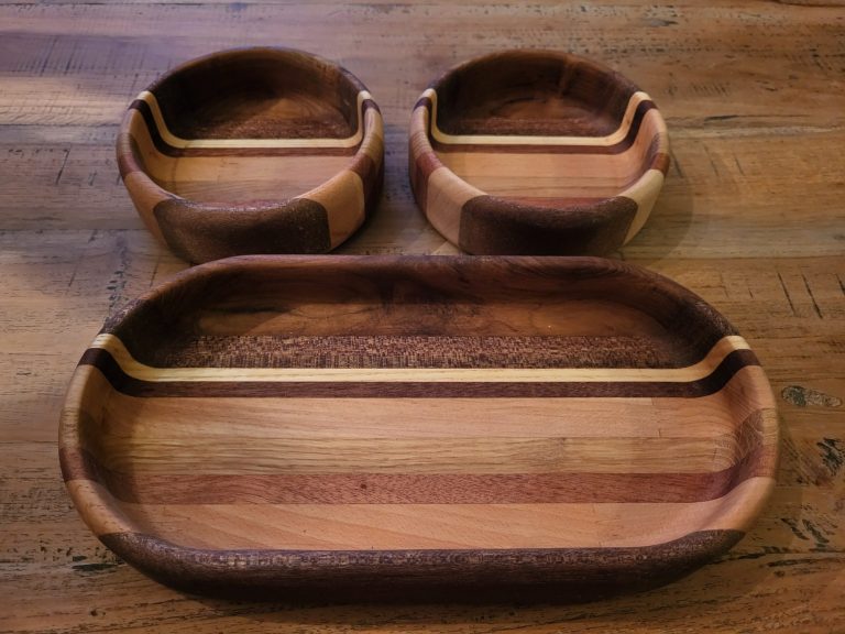 De verschillende soorten en kleuren hout van verschillende diktes vormen samen een uniek design.