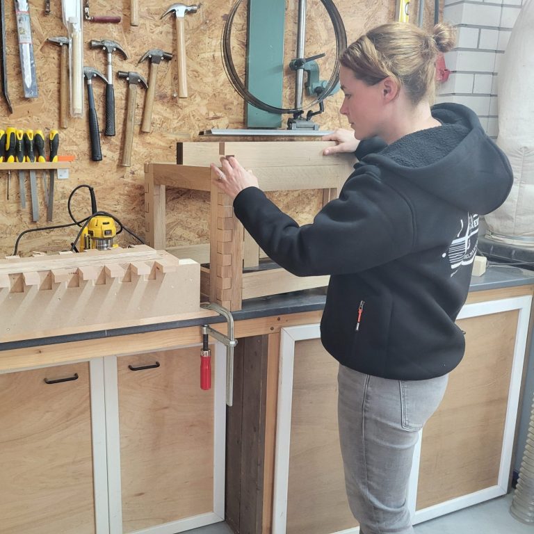Thuis was het een ander verhaal: daar wordt geklust, gebouwd en gecreëerd. Het werken met mijn handen geeft me energie en voldoening. In 2023 besloot ik dat ik méér wilde doen met die passie, en begon ik aan de opleiding tot meubelmaker. Een keuze die mijn leven verrijkte.